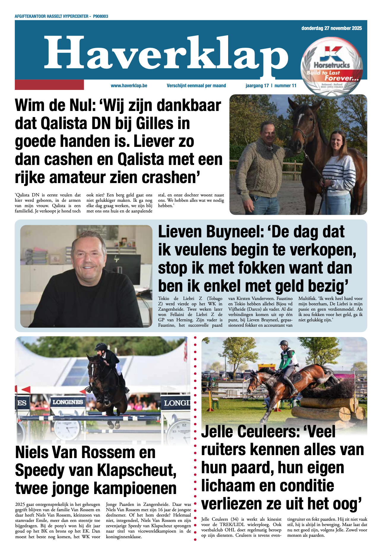 Haverklap is een volwaardige Vlaamse paardenkrant die één keer per maand verschijnt en u een uitgebreid nieuwsaanbod over sport, fokkerij en achtergrondinformatie brengt.