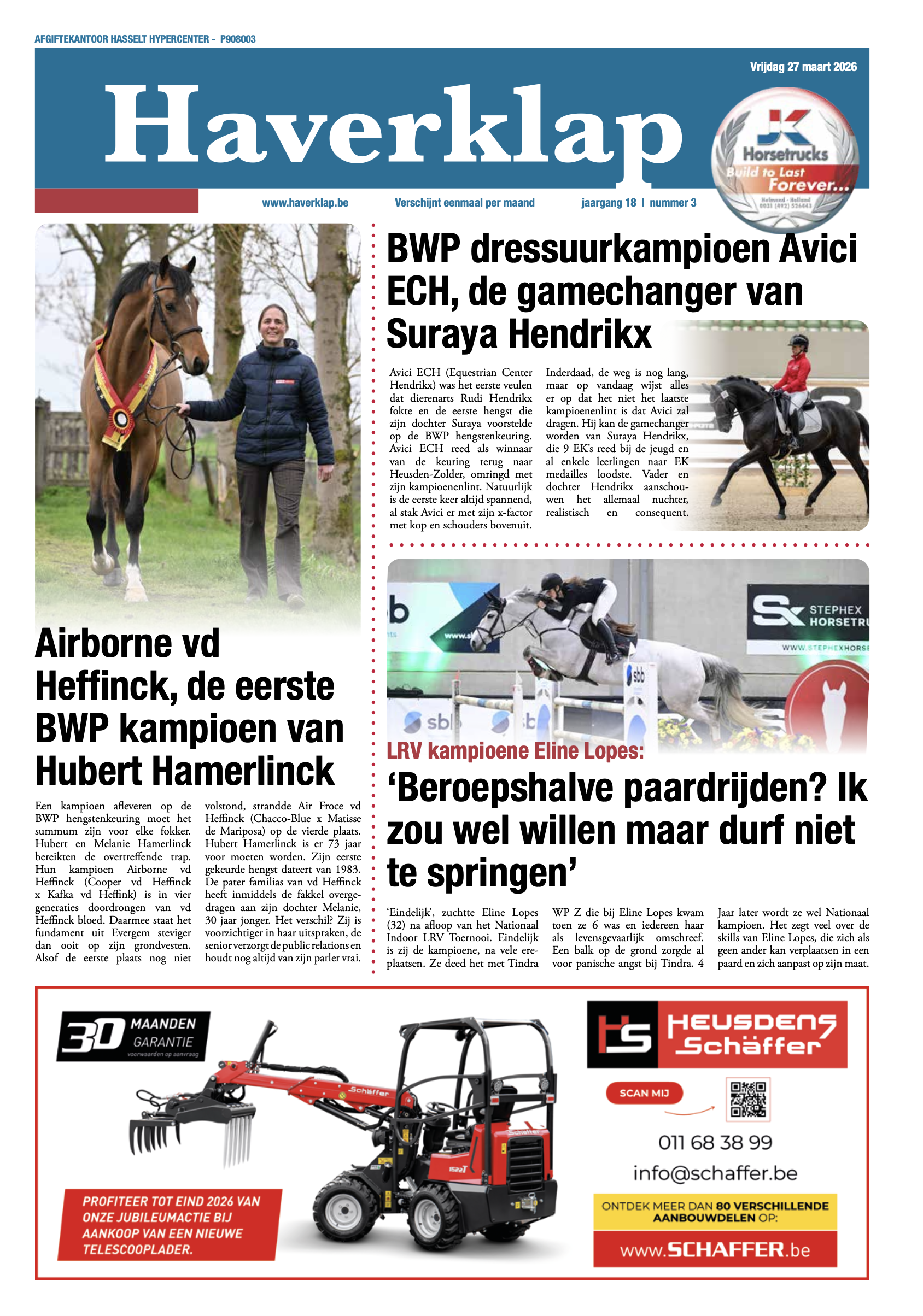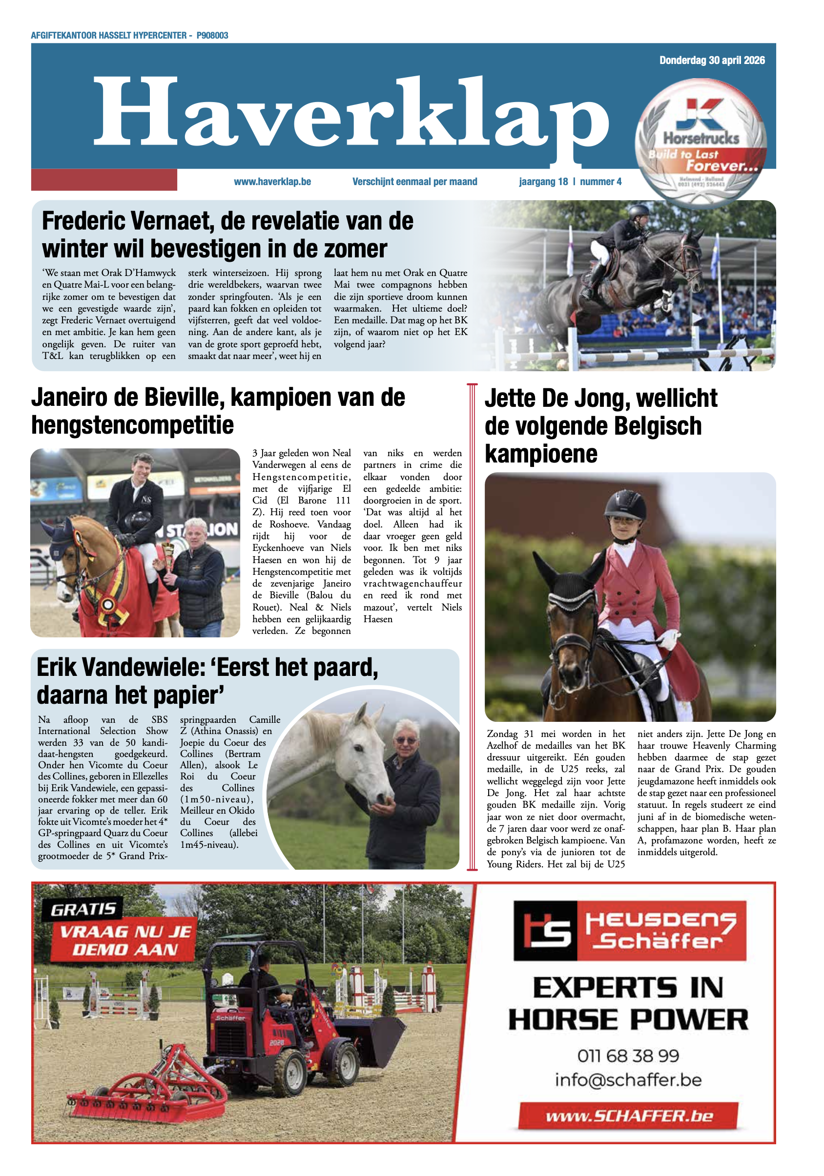 Haverklap is een volwaardige Vlaamse paardenkrant die één keer per maand verschijnt en u een uitgebreid nieuwsaanbod over sport, fokkerij en achtergrondinformatie brengt.