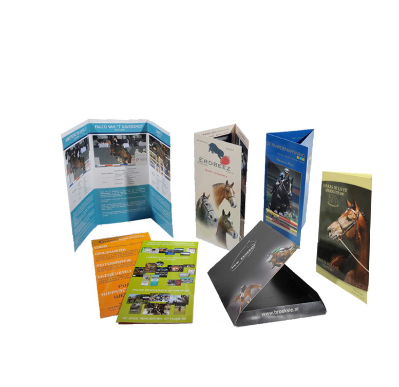 Affiche, folders, bestelbon (doorschrijfformulier), brochures, communiekaart, menukaart, wenskaart, flyers, notablok, presentatiemap, kalender,...